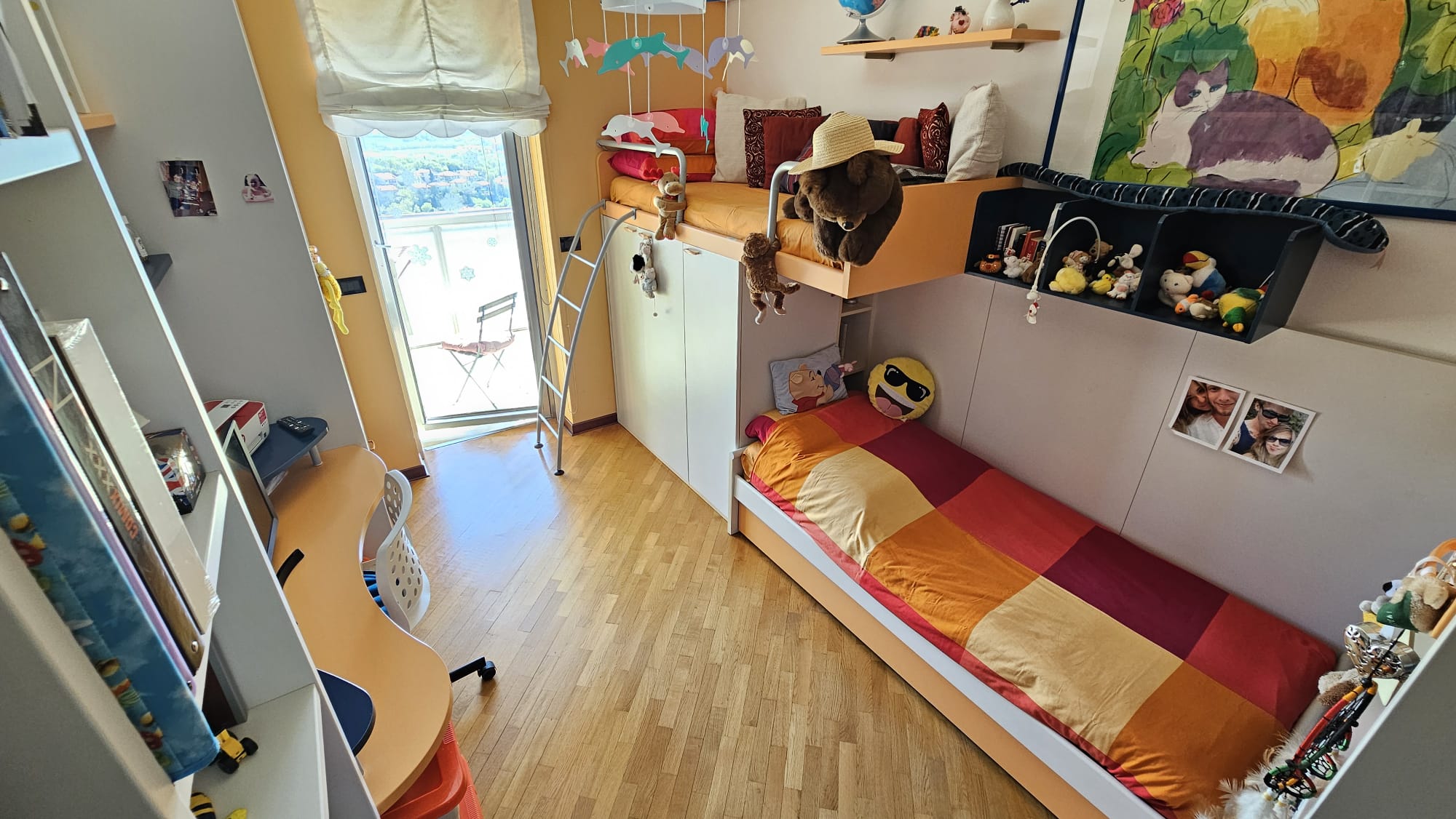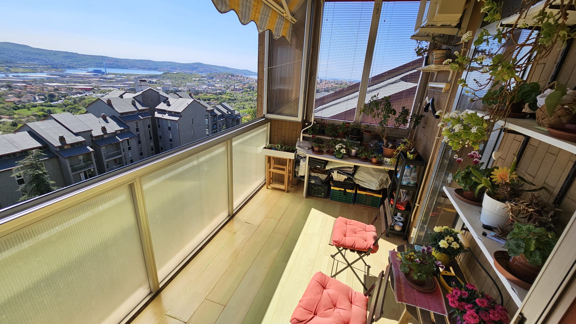 Si compone da ingresso che si affaccia ad un ampio soggiorno con uscita sulla terrazza verandata con mare e città, cucina abitabile, due bagni finestrati, stanza matrimoniale, seconda stanza con uscita al terrazzo verandato, ripostiglio e soffitta.