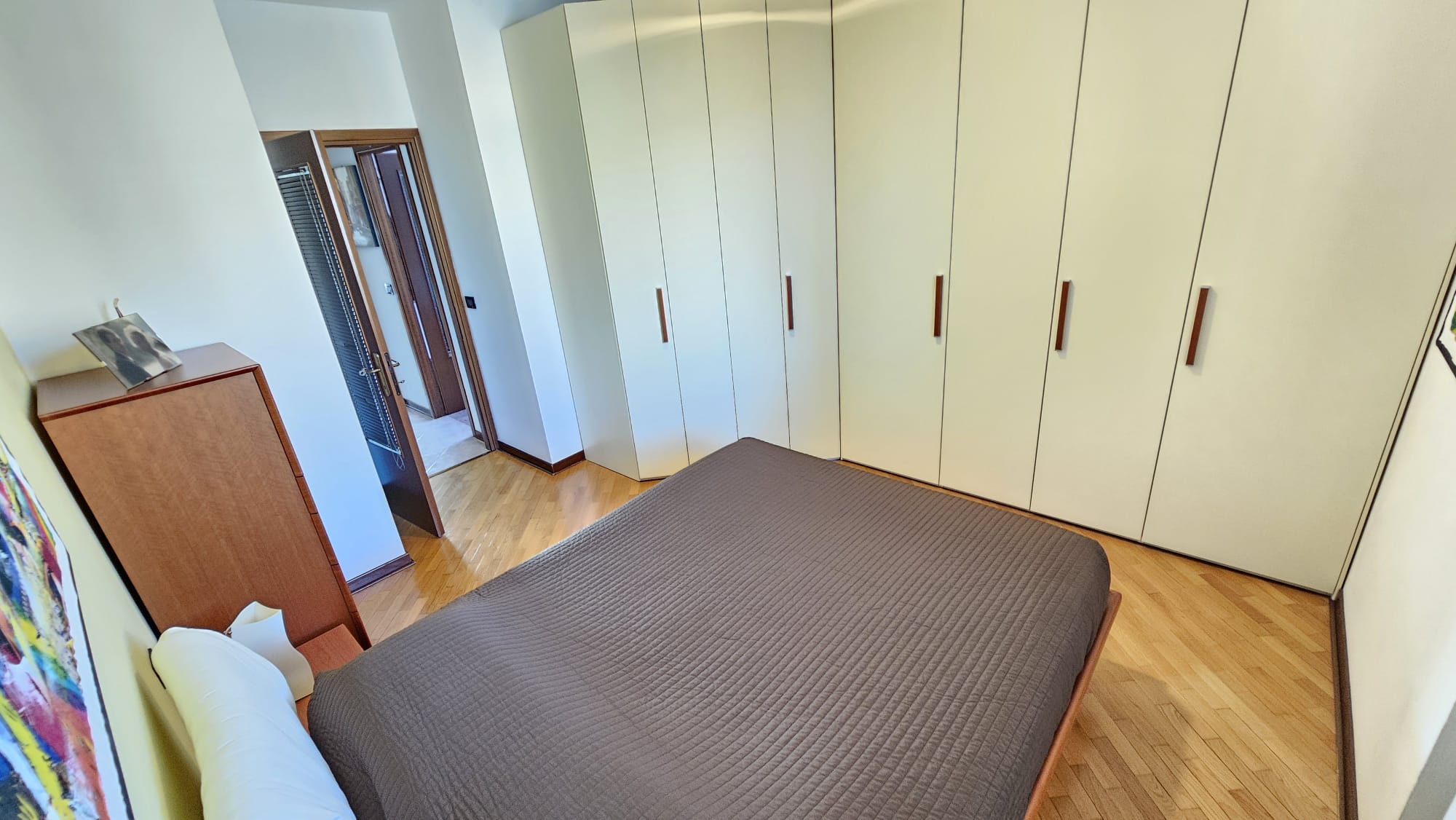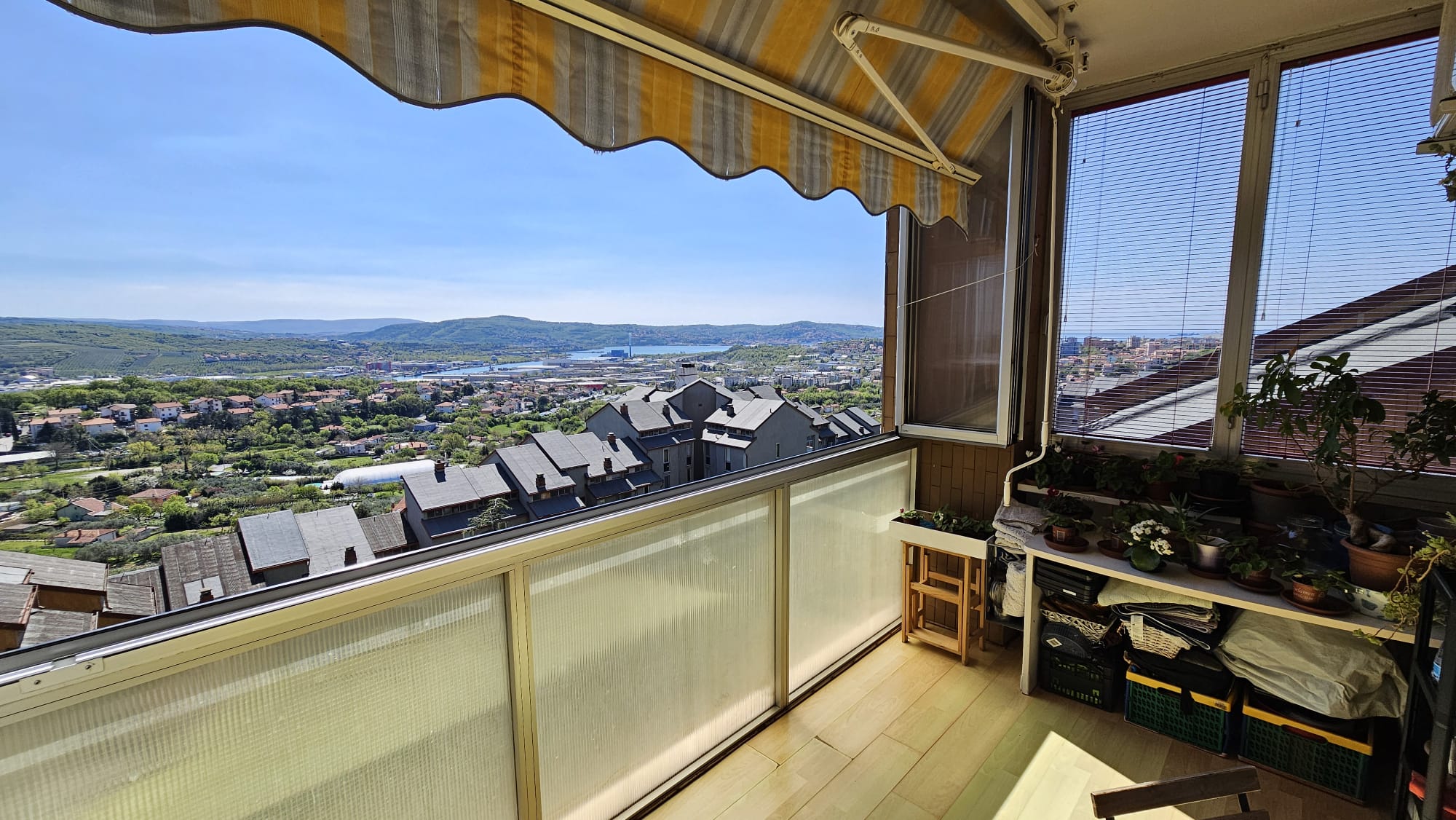L’alloggio sito al nono piano servito da ascensore gode di una vista a 360 gradi e una splendida luminosità.