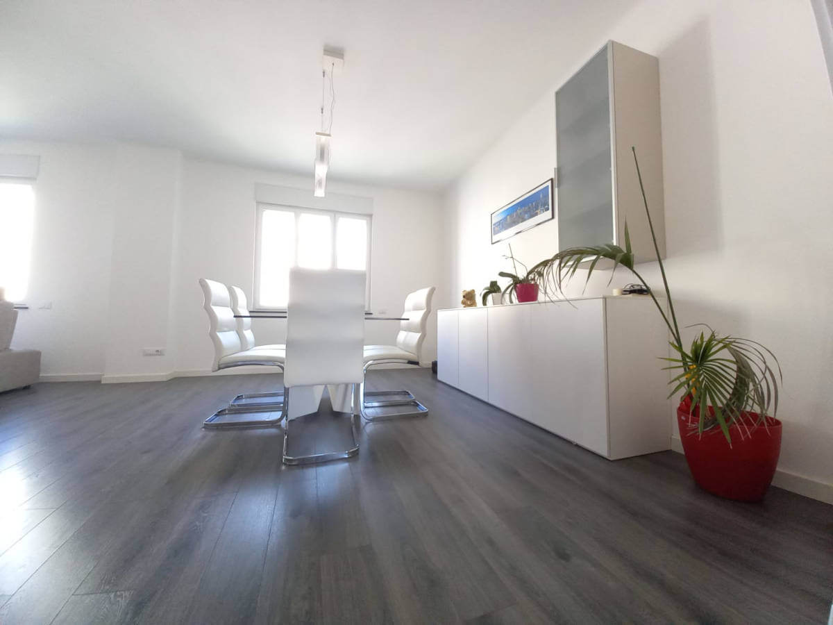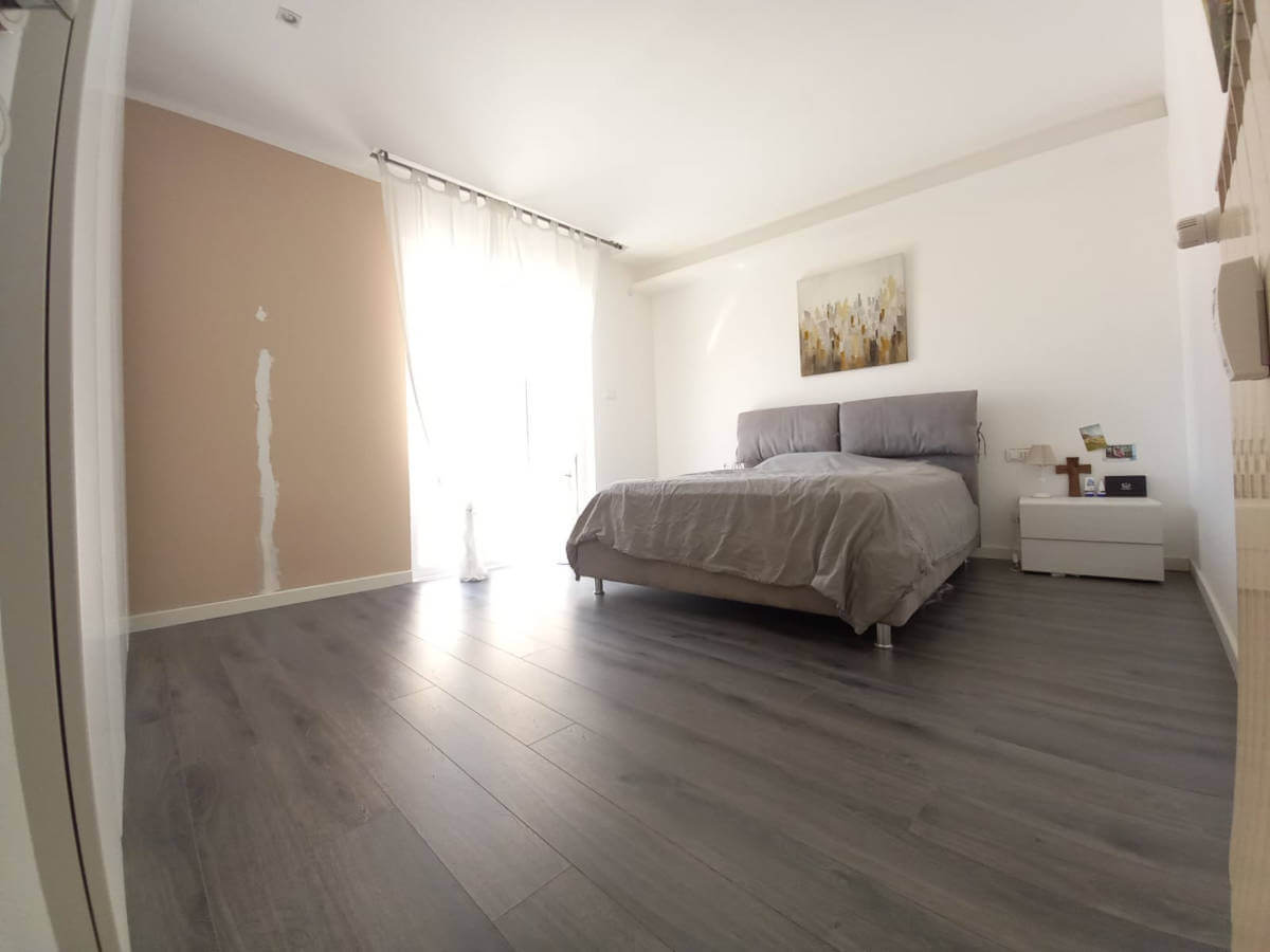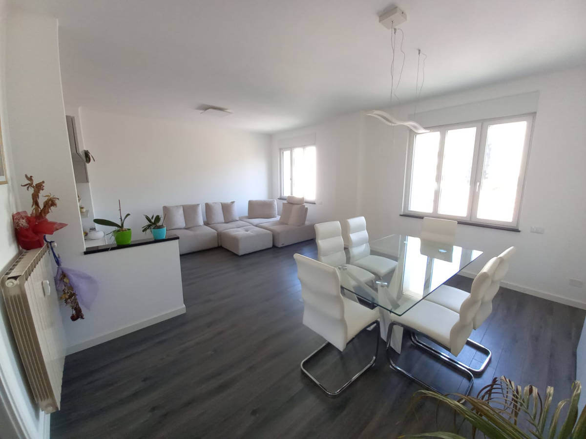 L’ampio soggiorno consente una diversa distribuzione degli spazi interni, con possibilità di ricavare una quarta stanza.