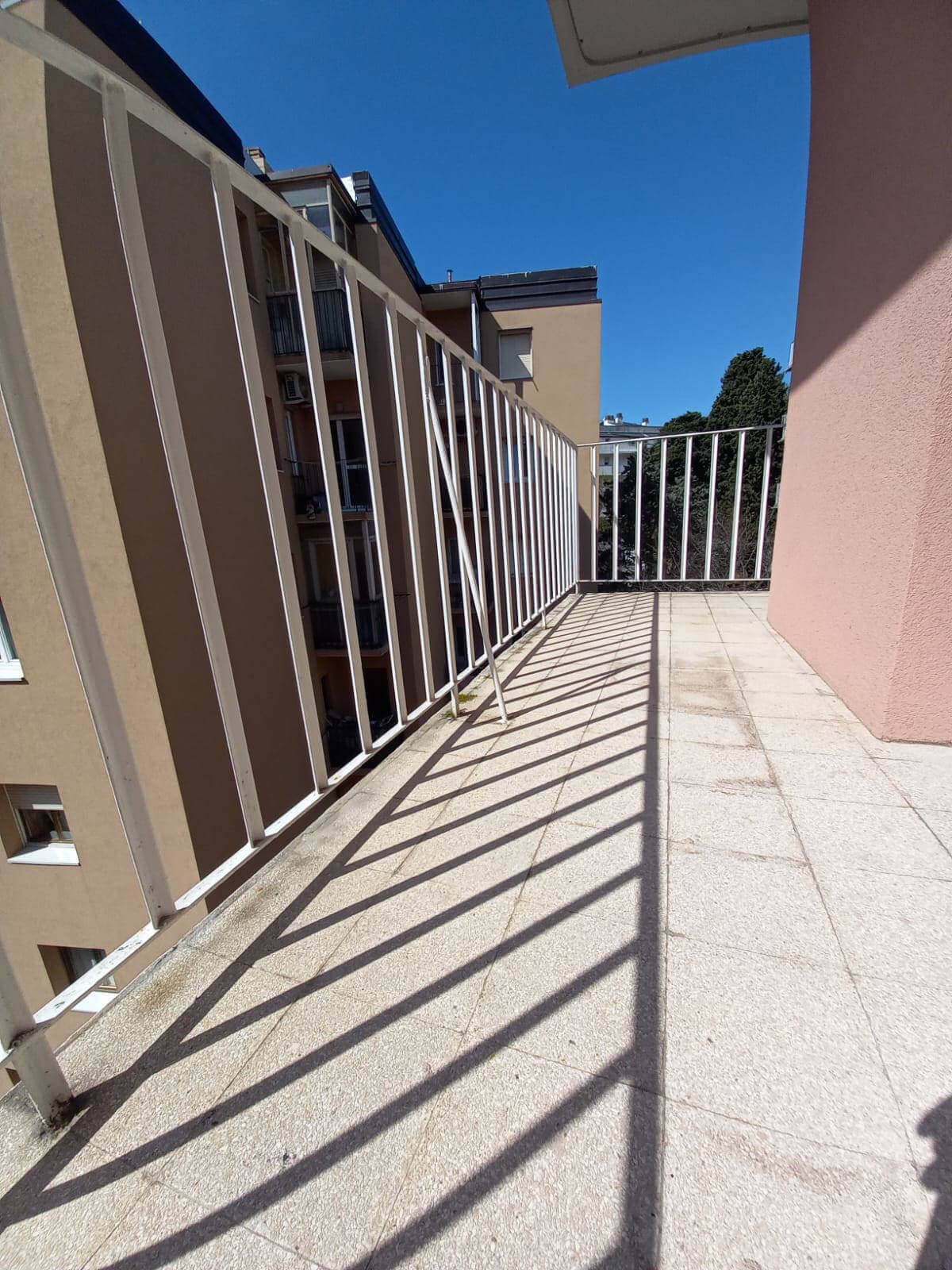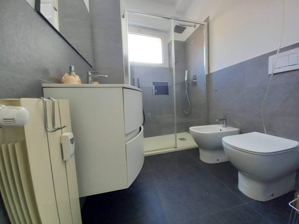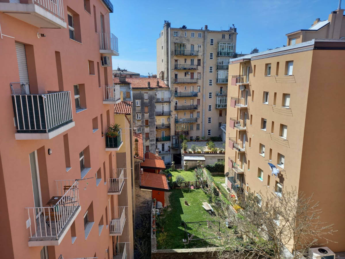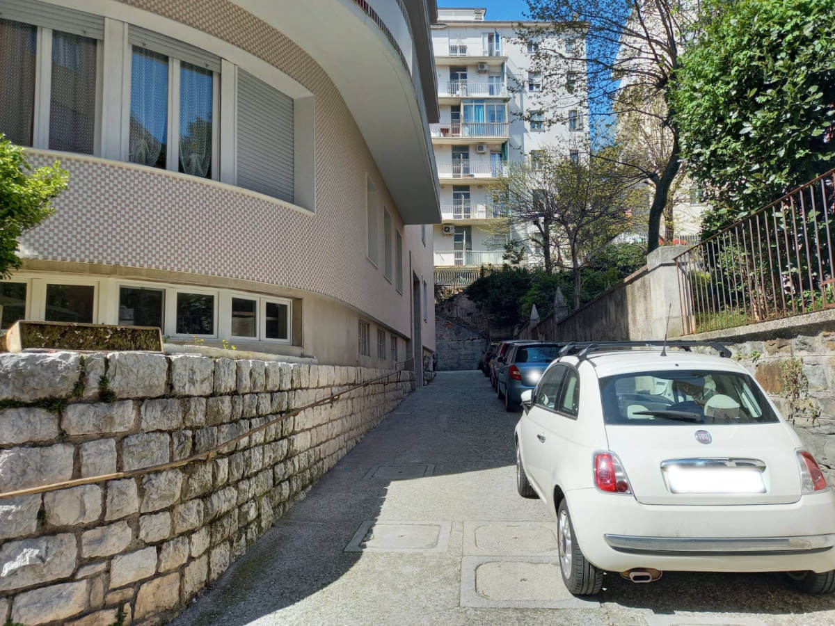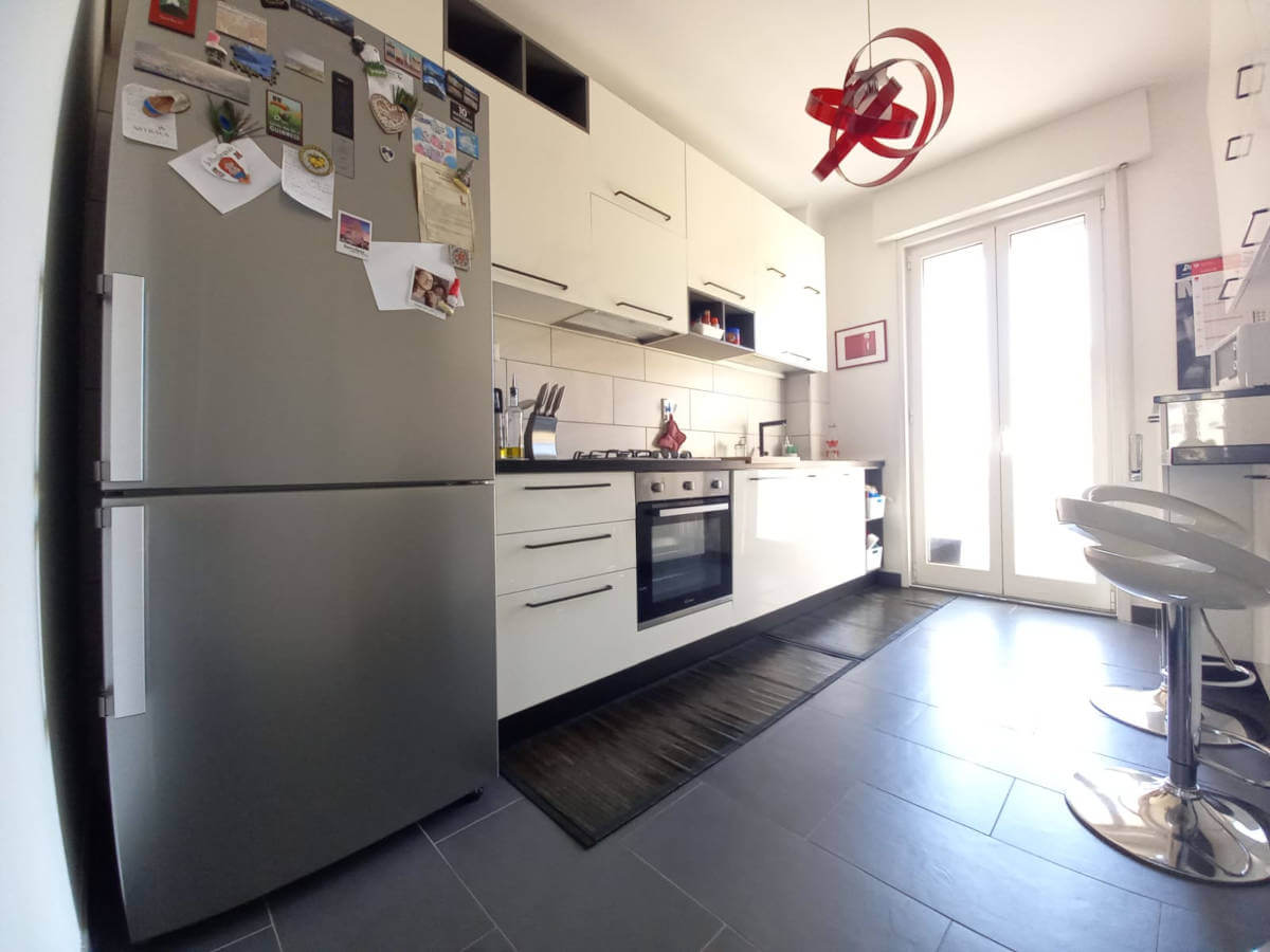 L’alloggio molto luminoso situato al quinto piano di uno stabile servito da ascensore, si compone da ingresso, grande soggiorno molto luminoso con vista aperta, cucina abitabille con poggiolo, due stanze matrimoniali di cui una gode di grande poggiolo, stanza singola/studio e due bagni finestrati ristrutturati con gusto.