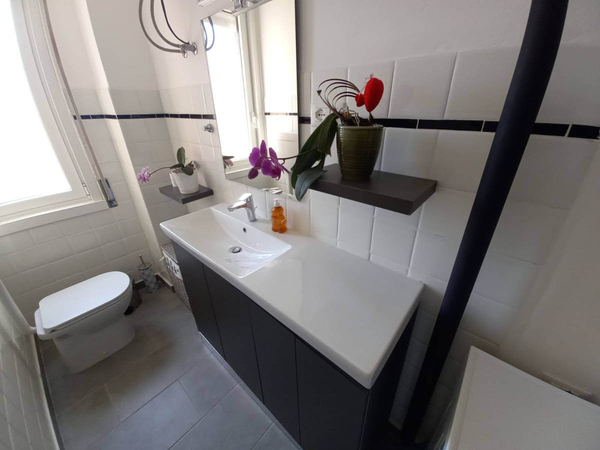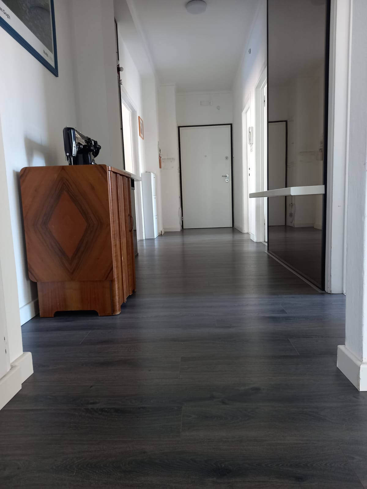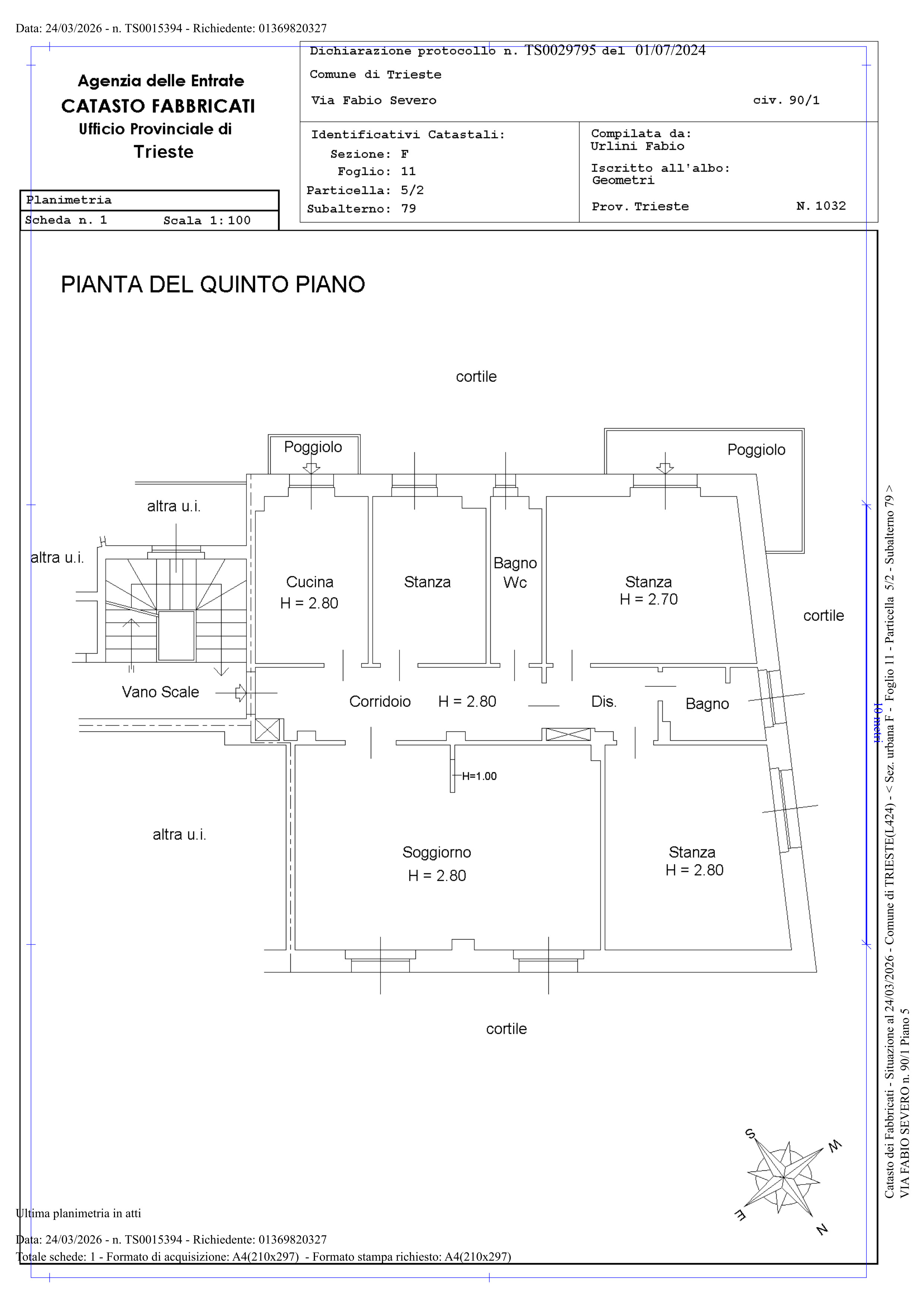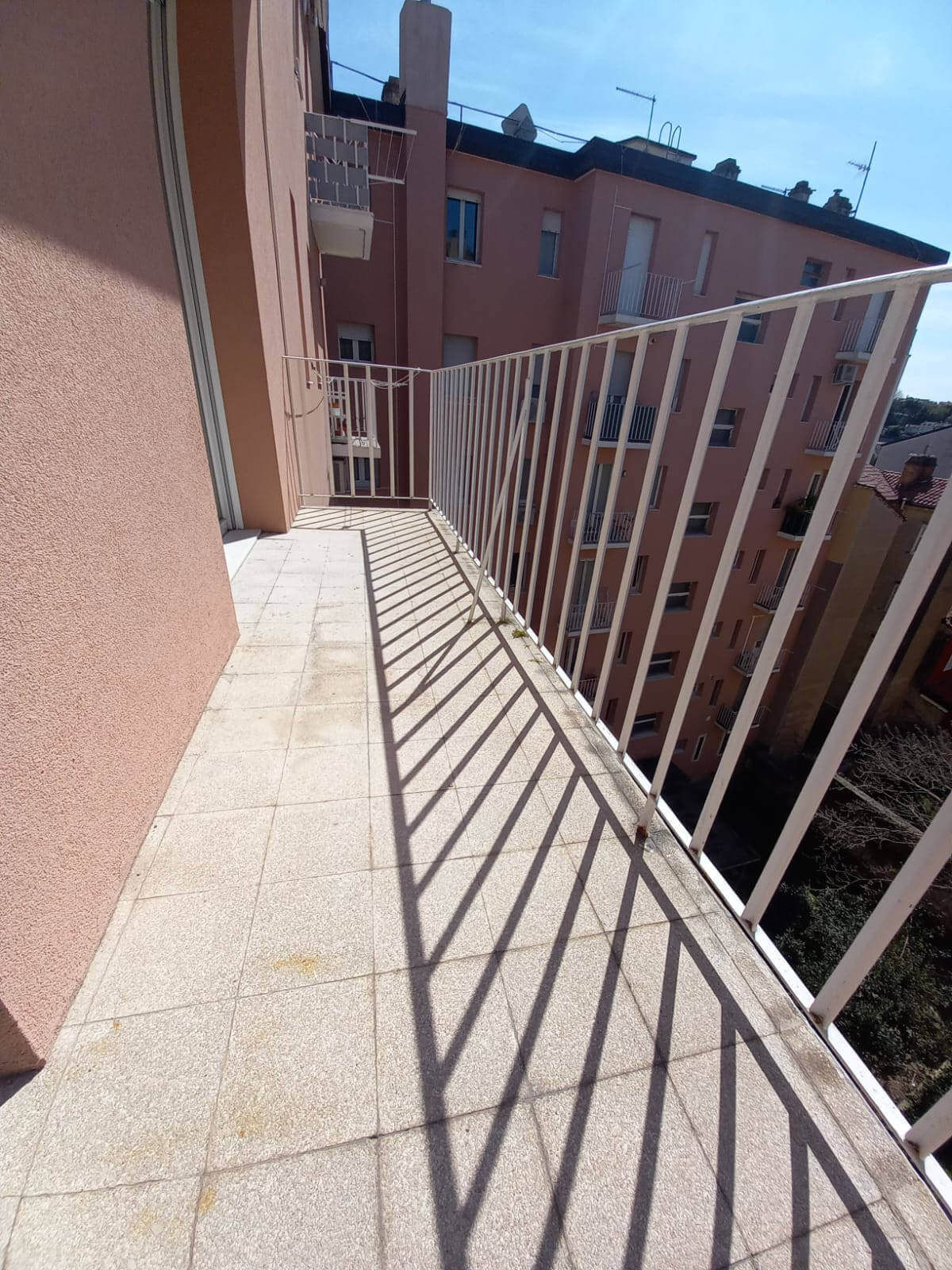 L’alloggio molto luminoso situato al quinto piano di uno stabile servito da ascensore, si compone da ingresso, grande soggiorno molto luminoso con vista aperta, cucina abitabille con poggiolo, due stanze matrimoniali di cui una gode di grande poggiolo, stanza singola/studio e due bagni finestrati ristrutturati con gusto.